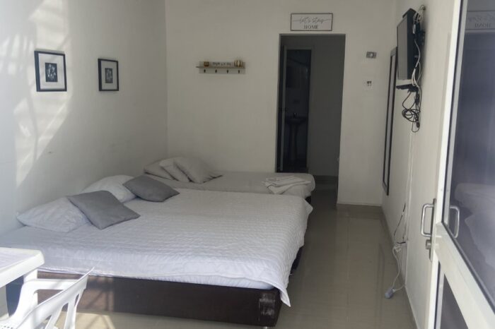cuenta con cama doble y cama sencilla, baño privado, nevera, Tv, cocineta e implementos, primer piso entrada independiente.
